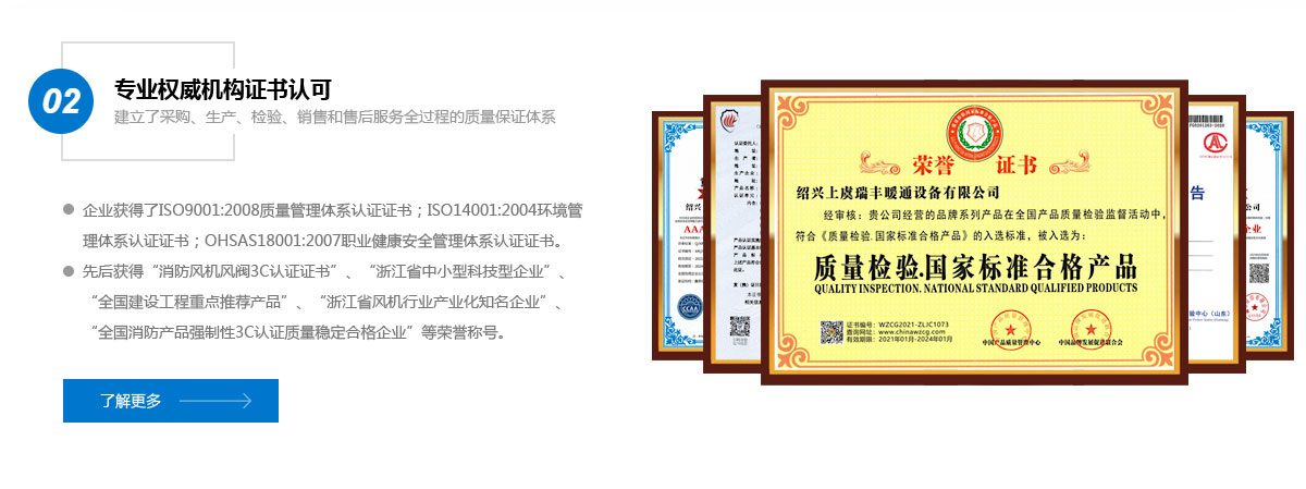 公司在吸取歐美知名風機廠商技術的基礎上,采用先進的CAD軟件技術,設計開發了新產品。為提高產品競爭力,企業建立了采購、生產、檢驗、銷售和售后服務全過程的質量保證體系、現代化的廠房、優秀的員工隊伍、精良的工藝生產設備、完善的檢測手段 ...